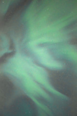 On the 7th, the colour was brighter but the aurora was just as bands over the northern horizon. On the 14th it stretched across the sky directly overhead dancing away. The bands seemed to stretch from west-east, as if the aurora bands had pushed down to our latitude.